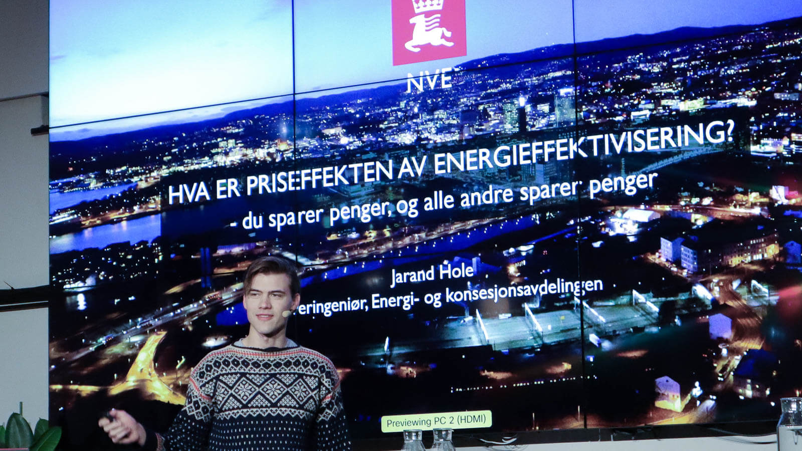 Før interesseorganisasjoner og politikere slapp til for å diskutere, hadde Jarand Hole fra NVE et kort og poengtert innlegg om energieffektivisering og strømpriser: