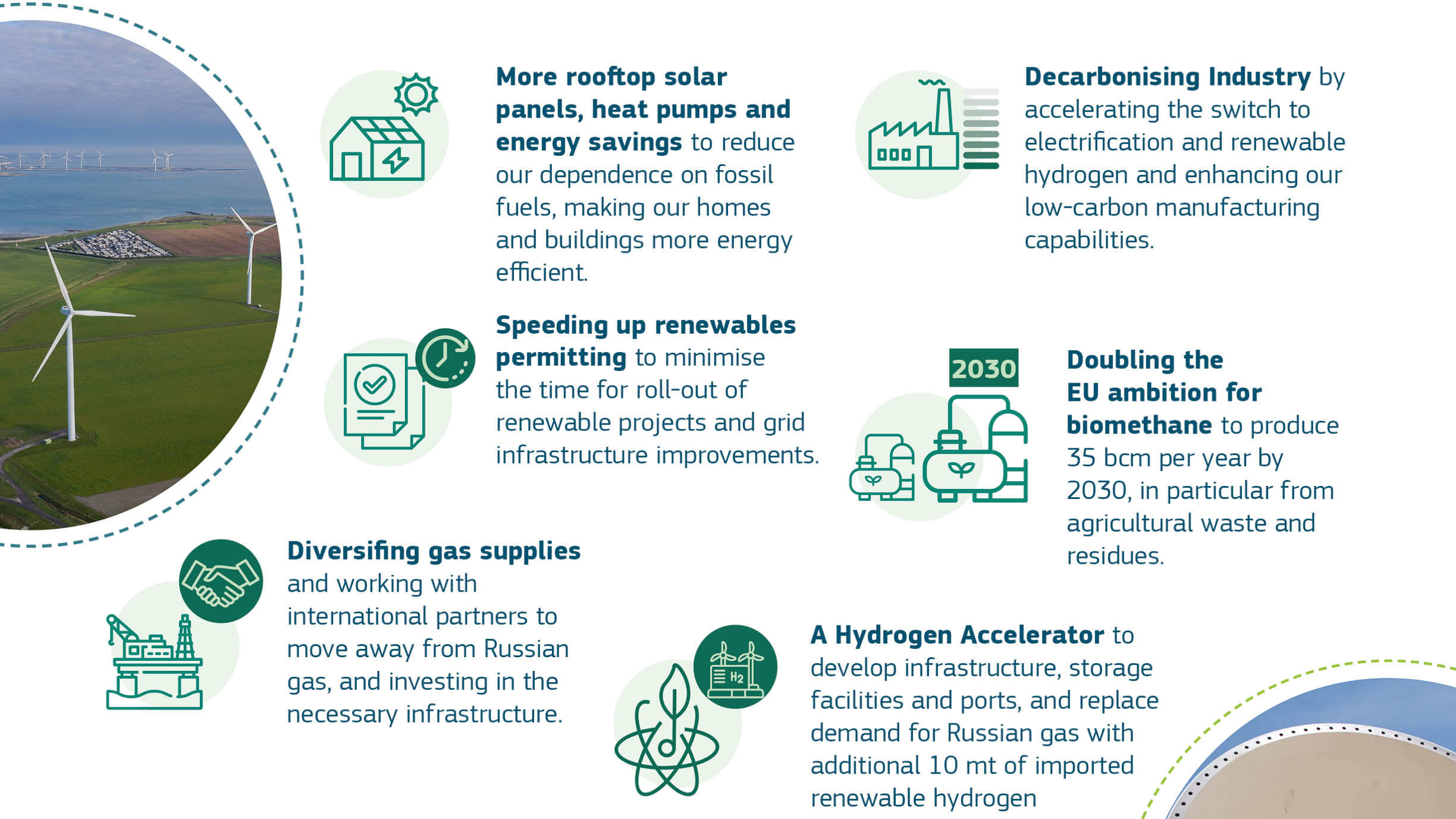 Det er deler av oppskriften for å redusere EUs avhengighet av fossil energi fra Russland og takle høye energipriser.