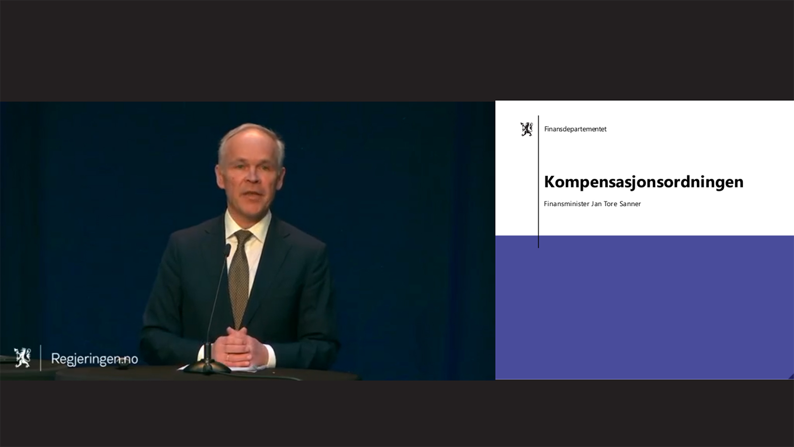 Jan Tore Sanner presenterte den nye kompensasjonsordningen fredag 3. april. Skjermdump fra Regjeringen.no