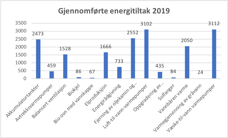 Enova støtter en rekke ulike tiltak som kan spare energi for norske boligeiere, men det er stor forskjell på treffsikkerheten: Enkelte tiltak blir bare gjennomført i noen titalls boliger i løpet av et år, mens de mest populære tiltakene velges av flere tusen boligeiere. Dette gjelder blant annet flere typer varmepumper og balansert ventilasjon.